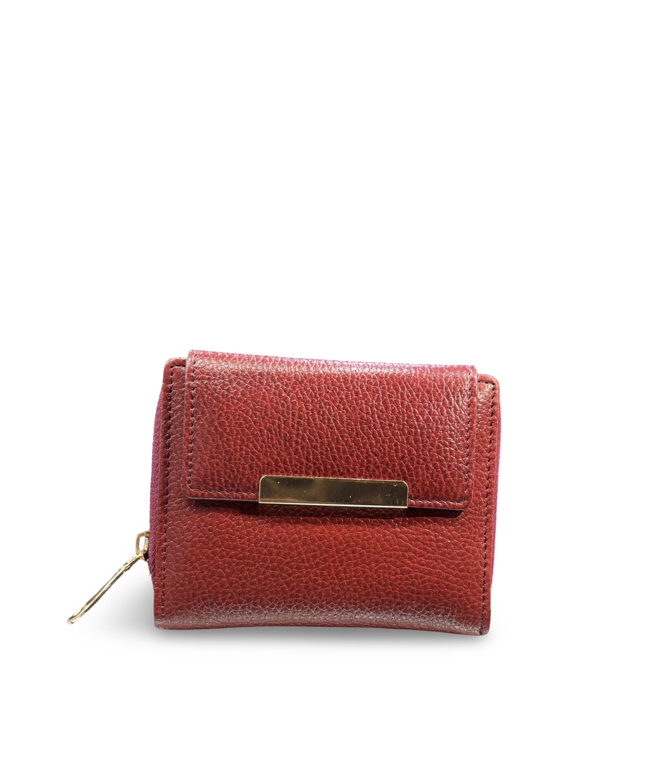 Accented with a polished gold bar detail, the design strikes the perfect balance between subtle glamour and timeless sophistication. The compact structure conceals a thoughtfully designed interior multiple card slots, a secure zip pocket, and organized compartments ensuring practicality without compromise.
